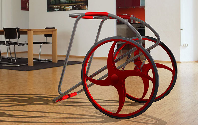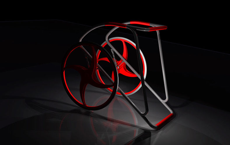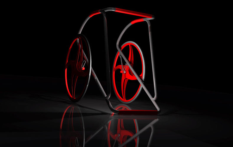 4 - The frame itself is one unique element with hidden joints to communicate movement and suggest a shape without angles. The wheels with four spokes in a bow shape suggest movement and velocity, even when standing still.